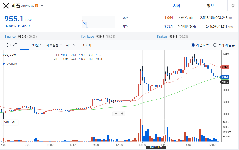 리플의 가격 변동은 시장의 전반적인 흐름과 밀접한 관련이 있습니다. 13일 오전 7시 40분 기준 가상화폐 거래소 업비트에서 리플은 전 거래일 대비 19.45%뛴 1038원에 거래가 되고 있습니다. 특히 비트코인과의 관계를 살펴보면, XRP는 비트코인의 가격 변화에 따라 큰 영향을 받는 경향이 있습니다.