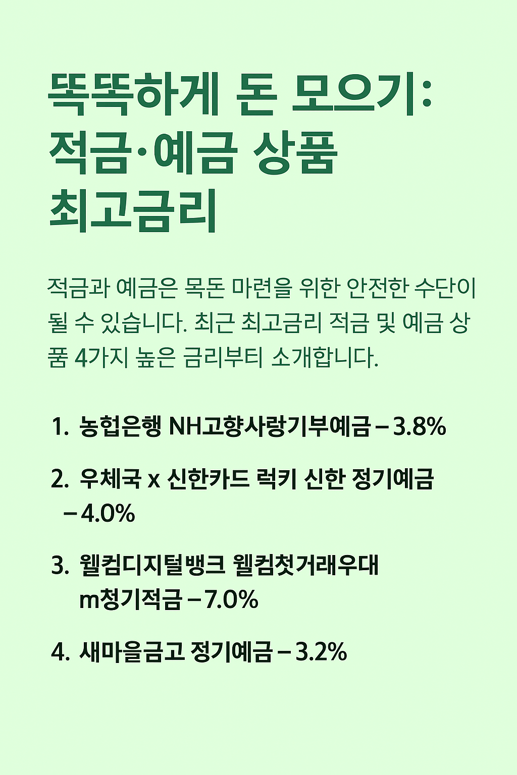 금리 높은 정기예금 및 적금 TOP 4