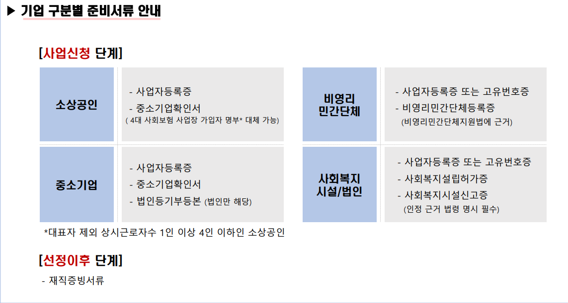 [ ] 신청 대상 확인 완료!(중소기업, 사회복지법인 등)